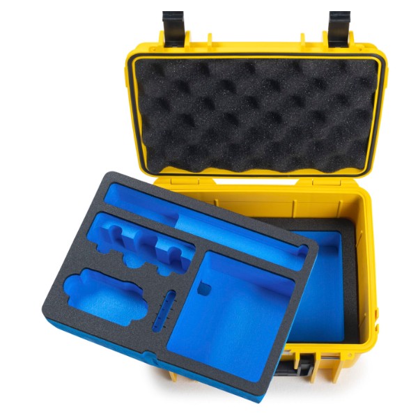 PROTECTION OPTIMALE : Appareil photo, perche d'extension (1,5 m), station de charge à 3 emplacements avec batteries insérées, cartes microSD – tout est rangé en toute sécurité et prêt à l'emploi dans l'insert parfaitement ajusté – aucun mouvement, aucun cliquetis. Le compartiment universel supplémentaire (117 x 102 x 52 mm) offre un espace pour les accessoires tels que câbles, vis ou adaptateurs.