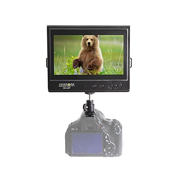 L'écran SK-LM7 dispose d'une entrée HDMI, YPbPr, vidéo 1, vidéo 2.SK-LM7 est livré avec une visière, un adaptateur de griffe standard réglable, un adaptateur secteur et un câble HDMI.