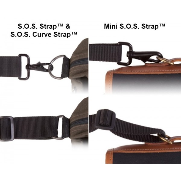 La courroie SOS est adaptée pour soutenir des sacs lourds grâce à ses crochets en métal.