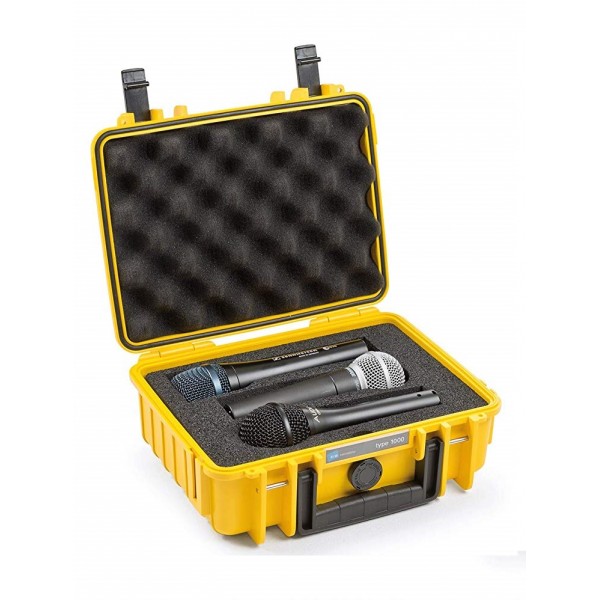 Valise B&W TYPE 1000 Jaune insert mousse pour 3 microphones.