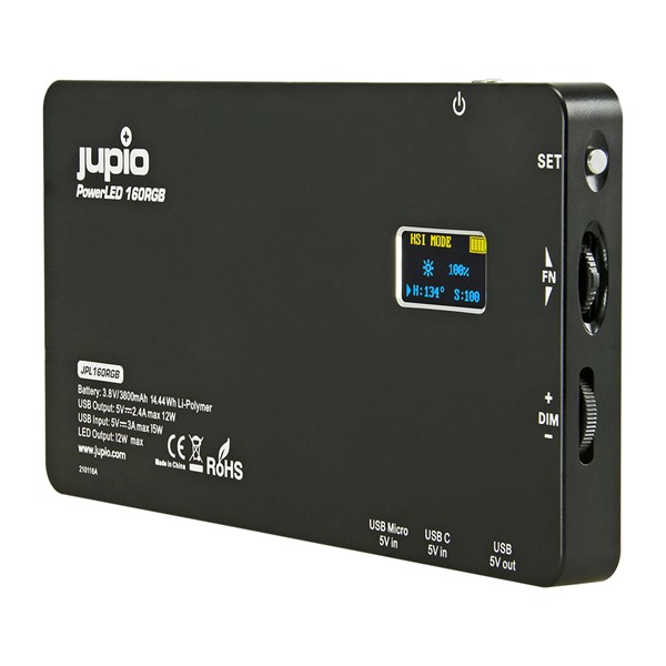 Le Jupio PowerLED 160RGB est une lumière LED portable et une batterie externe dans un boîtier en aluminium solide.