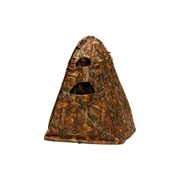 La toile de la tente est bien camouflée à l'extérieur et recouverte de noir à l'intérieur pour une obscurité optimale. Vous aurez suffisamment d'espace pour vous asseoir ou vous tenir debout, et bien sûr, de la place pour votre équipement.